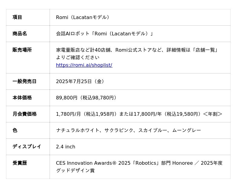 株式会社MIXI(東京都渋谷区、代表取締役社長 上級執行役員 CEO:木村 弘毅)は、会話AIロボット「Romi」(読み:ロミィ)の新モデル「Romi(Lacatanモデル、読み:ラカタン)」に対応した公式アフターケアサービス「Romiクリニック」を本日2026年1月14日より開始しました。