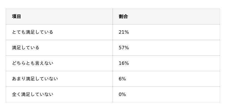 施術満足度については、「とても満足している」「満足している」と回答した人が合計で78%にのぼり、多くの人が前向きな評価を示しました。