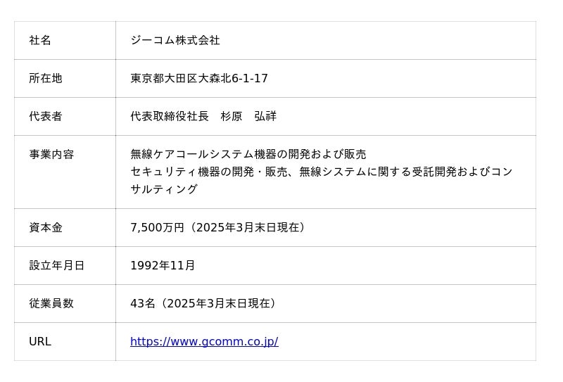 ジーコムは、1992年より無線技術を活用したソリューションの開発・販売を行っている企業です。無線技術を基盤に、高齢者施設や医療機関向けのワイヤレスネットワークシステムを中心に事業を展開しています。特に無線ナースコールシステム「ココヘルパ」は、無線とスマートフォンを活用し見守り機能も備えた新しいカテゴリの製品です。