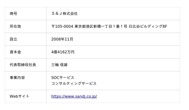 セキュリティ監視サービスやセキュリティ事故対応などのサイバーセキュリティ事業を展開するS&J株式会社(本社:東京都港区、代表取締役社長:三輪 信雄、証券コード:5599、https://www.sandj.co.jp/、以下「S&J」)は、インシデントレスポンスの拠点となるSecurity Operation Center(以下、SOC)を、2026年1月14日(水)に開設いたします。