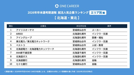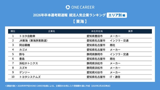 「ワンキャリア就活人気企業ランキング 【エリア別編】26卒本選考期速報」を公開
