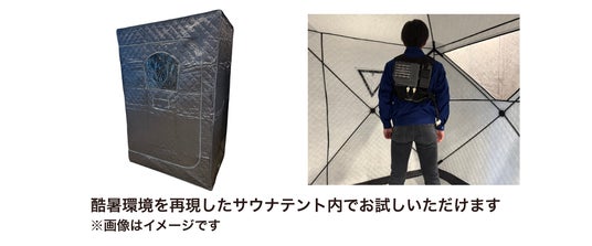 スマート物流EXPOにも展示予定の「メディエイド アイシングギア ベスト2」をはじめとした暑さ対策アイテムを夏の労働現場の酷暑環境下を再現した空間で試着・比較できる期間限定の体験会です。