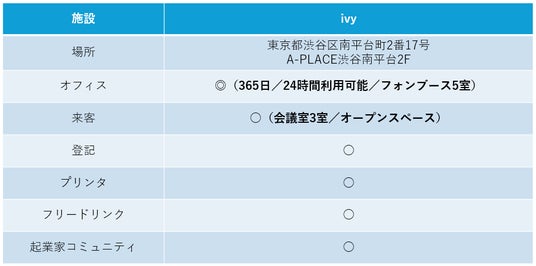 インキュベーションオフィス「ivy」を24時間365日利用可能。希望者には最大1.5億円の投資検討も