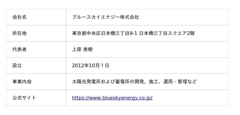 ・ブルースカイエナジー:太陽光発電設備の改修および運営・管理