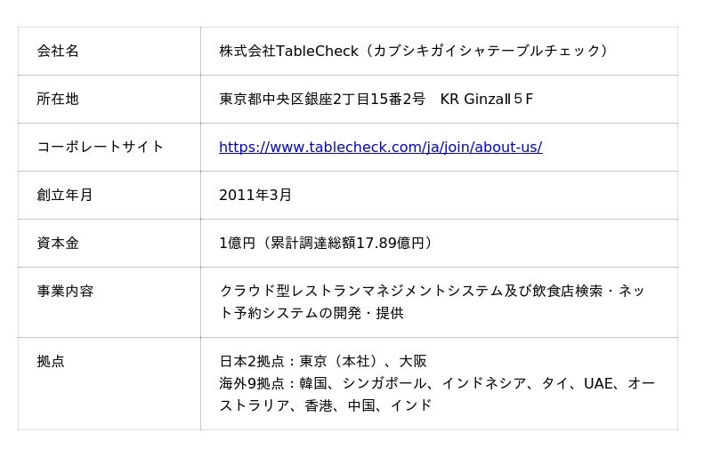 テーブルチェックは、「Dining Connected ~世界中のレストランとゲストをつなぐプラットフォーム~」をミッションに事業を展開する日本発レストランテックカンパニーです。テクノロジーを活用した次世代の「おもてなし」を実現します。現在、展開している主なサービスは、飲食店向け予約・顧客管理システムと、ゲスト向け飲食店検索・予約ポータルサイト。24時間365日リアルタイムの空席情報を把握することで、飲食店にもゲストにもより良いレストラン体験の実現をサポートしています。