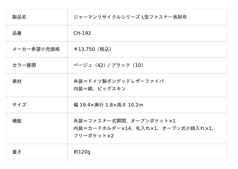 CH-192 L字ファスナー長財布:https://shop.komaya.co.jp/products/ch-192