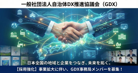 全国の自治体のデジタルトランスフォーメーション(DX)を推進し、地域課題の解決を支援する一般社団法人自治体DX推進協議会(所在地:東京都港区、以下GDX)は、活動の拡大と支援体制の強化を目的に、新たに事務局員を募集することをお知らせいたします。