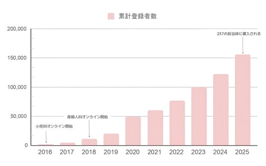 また、同年には産婦人科領域にサービスを拡張するため、「産婦人科オンライン」を開始。妊娠・出産から子育てまで切れ目ない支援が可能になりました。