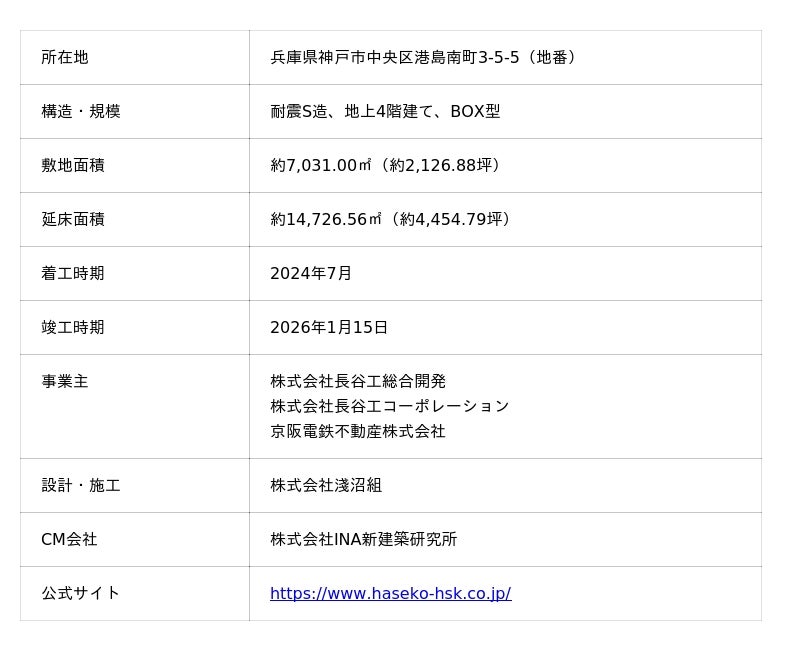株式会社長谷工総合開発 (本社:東京都港区芝、代表取締役社長:宮原 昭、以下「長谷工総合開発」)、株式会社長谷工コーポレーション(本社:東京都港区芝、代表取締役社長:熊野 聡)、京阪電鉄不動産株式会社(本社:大阪府大阪市中央区、代表取締役社長:道本 能久)は、「ルネロジ神戸ポートアイランド」(以下「本施設」)が竣工しましたのでお知らせします。