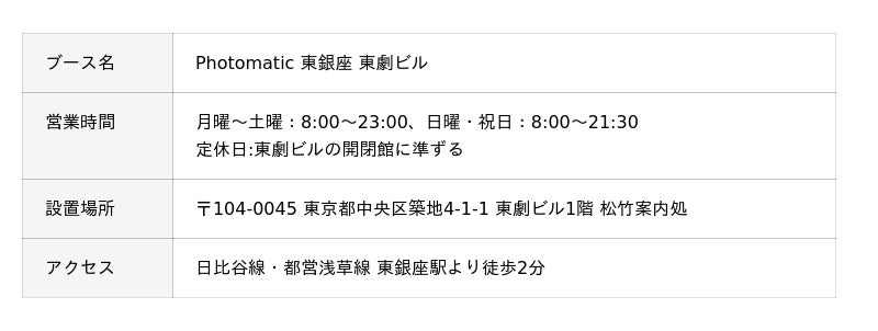 ※Photomatic 東銀座 東劇ビル限定で撮影可能