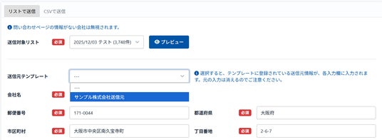 送信元テンプレート機能