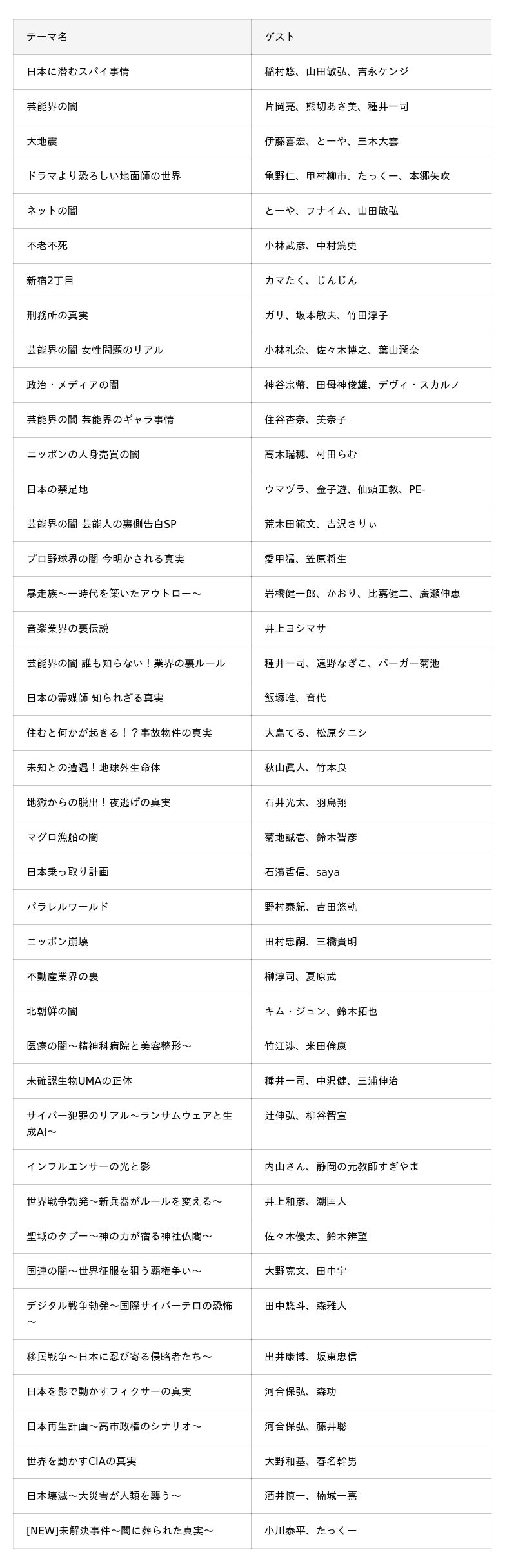【配信中のテーマ・各回ゲスト】