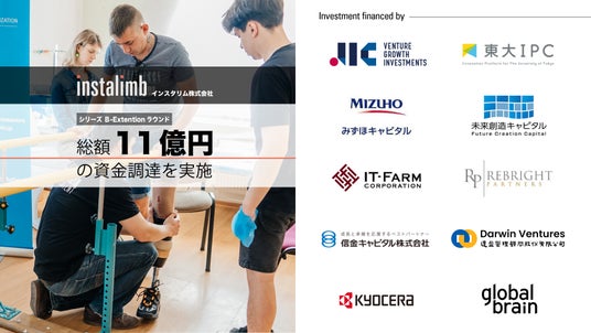 3DプリンティングおよびAI技術を活用して、世界初(※1)となる3Dプリント義足製造ソリューション事業を日本・インド・フィリピンで展開するインスタリム株式会社(本社:東京都隅田区、代表取締役CEO:徳島 泰、以下「当社」)は、JICベンチャー・グロース・インベストメンツ株式会社、東大IPC、みずほキャピタル株式会社など、計9社を引受先とする第三者割当増資により、シリーズB-エクステンションラウンドとなる総額約11億円の資金調達を完了いたしました。