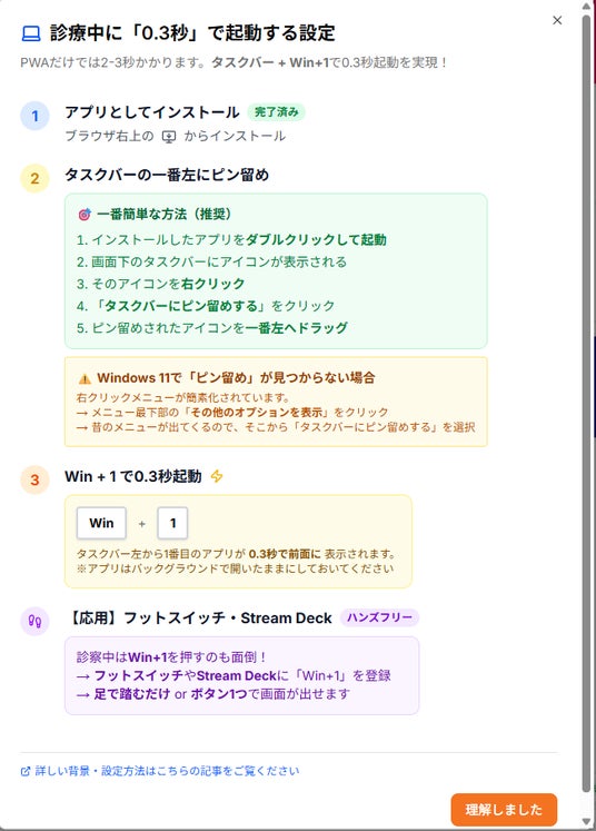 - 外来を学びの場に: ボタンをコピーするだけで、仲間の先生が工夫を凝らした「伝え方」を即座に取り入れ、自らの診療レベルをアップデートできます。