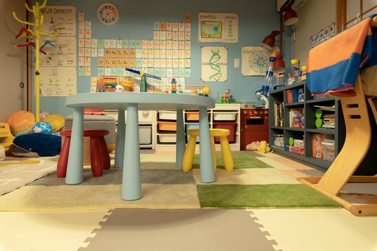 息子・亮介の子供部屋には、アイボリー・グリーン・グレーの3色を用いた「THE RUG crafted with MIYOSHI RUG」を採用。科学や実験に興味を持つ亮介の感性に寄り添いながら、あたたかみのある空間を演出しています。
