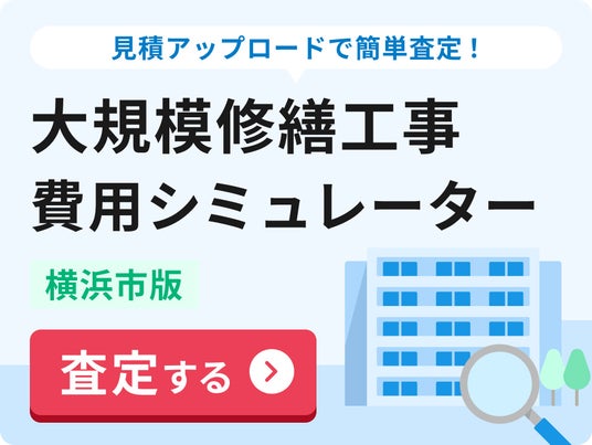 「横浜市版大規模修繕工事費用シミュレーター」の提供大規模修繕工事の見積書をアップロードすることで、エリア、規模等が考慮された費用相場が算出され、相場との価格差の査定を受けることができます。これにより、工事費用の妥当性を把握しやすくなり、管理組合の修繕積立金の適切な利用や、業者選定等の参考にできます。(利用料無料)