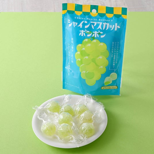 【内容】ファミリーマート限定のレトロなひとくちお菓子です。マスカットシロップをシャリシャリ食感の砂糖で包み込みました。1ケース6袋入り。