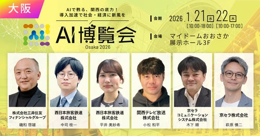 「AI博覧会 Osaka 2026」は、AIエージェント、生成AI、RAG、画像認識、外観検査など、企業のAI活用を支援する多様なAI製品・サービスを集めた総合展示会です。