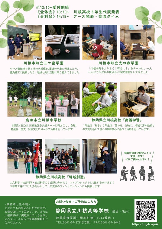 川根地域における少子高齢化や人口減少という課題に対し、次世代を担う若者が地域への愛着を持ち、主体的に関わる姿勢を育むことを目的としています。これまで各校で独立して行われることが多かった「探究学習」を、中学校と高校が手を取り合って合同で行うことで、学校種を越えた学びの相乗効果を生み出します。生徒たちが「自分たちが地域のために何ができるか」を真剣に考え、対話するプロセスを通じて、地域活性化の新たな種をまくことが狙いです。