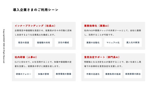 株式会社デイワンが開発・提供する「相棒AI」は、役割や立場ごとの思考や判断を再現し、業務を前に進めるためのAI設計思想およびプロダクト群です。