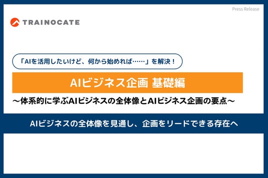 人材育成のトレノケート株式会社 (本社 : 東京都新宿区、代表取締役社長 : 早津 昌夫、以下トレノケート) は、AI活用を検討する方を対象とした新コース「AIビジネス企画 基礎編 ~体系的に学ぶAIビジネスの全体像とAIビジネス企画の要点~」(以下、本コース)の提供を開始しました。