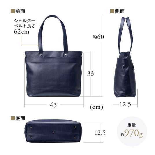トートバッグ 本革 メンズ レディース 通勤 ビジネス おしゃれ 通学 A4 大きめ レザー ビジネスバッグ ノートPC ネイビー