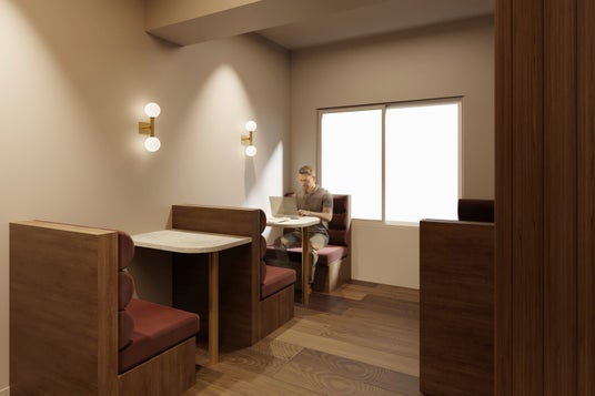 一人で集中できるボックスシートに加え、リラックスしながら作業できるソファ席、さらにはオンライン会議や通話を想定したワーキングブースも完備しています。