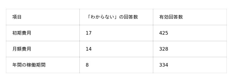※本アンケートは各選択肢に「わからない」を含めており、上記の図表および文章では該当する回答を除いて掲示しています。「わからない」の回答数および有効回答数は次のとおりです。