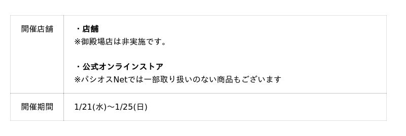 また、【パシオス冬のクリアランスSALE [LAST SALE] 】も同時開催いたします。