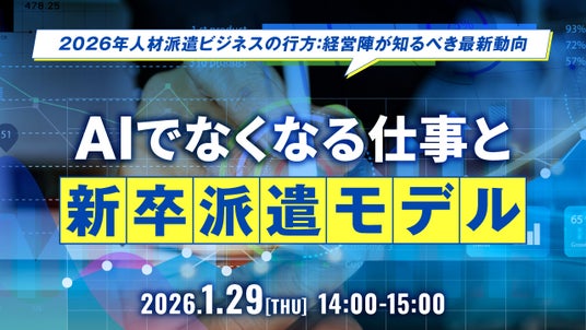タイトル:2026年人材派遣ビジネスの行方:経営陣が知るべき最新動向 AIでなくなる仕事と新卒派遣モデル開催日時:2026年1月29日(木) 14:00 ~ 15:00 *10分前から入室可能