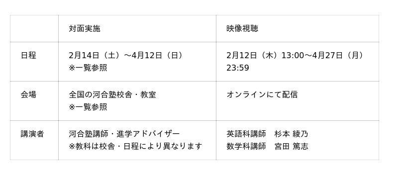 新高1生が学習の不安を解消し、充実した高校生活をスタートさせるための機会として、本プログラムをぜひ貴媒体にてご紹介ください。