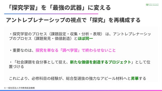 一般社団法人子供教育創造機構(所在地:東京都中央区、代表理事:森 博樹)は、運営する「大学入試総合型選抜対策 キャリア探究塾」において、2026年1月20日より、場所や時間を問わず受講可能なeラーニングサービスの提供を開始いたしました。