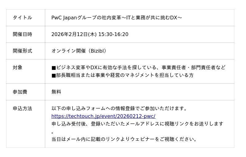 お申し込みはこちら:https://techtouch.jp/event/20260212-pwc/