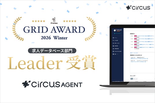 circus株式会社(本社:東京都中央区、代表取締役:矢部 貴志)が運営する人材紹介プラットフォーム「circusAGENT」が、アイティクラウド株式会社が運営するIT製品レビュープラットフォーム「ITreview」における「ITreview Grid Award 2026 Winter」の求人データベース部門において、「Leader」を受賞したことをお知らせいたします。