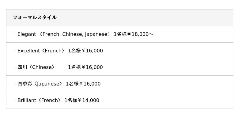 Elegant ¥18,000~ /1名様