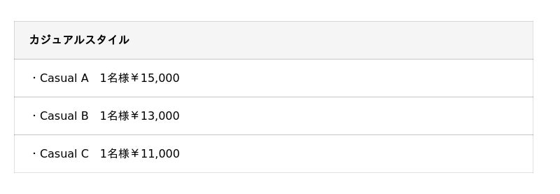 Casual A ¥15,000 /1名様
