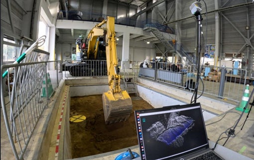 今回の実証実験は、屋内試験設備に独自開発した自動検出システムと可搬式LiDARを設置し、非GNSS環境下での重機の動きや掘削地山の変化を、1cm単位でリアルタイムに自動検出することを確認しました(LiDARとの距離10m~30m)。これにより、本技術が実施工環境での適用に向けて十分な精度を有することが実証されました。
