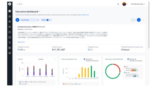 - エグゼクティブ向けダッシュボードで、カスタマーヘルスや対応パフォーマンスを可視化