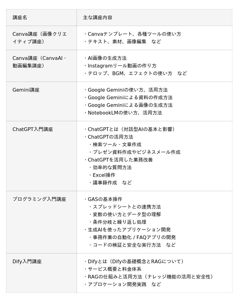 対象となるのは、話題の生成AIツール活用にフォーカスした以下の6講座です。