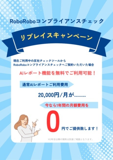 RoboRoboコンプライアンスチェック、2月末までの期間限定で『リプレイスキャンペーン』を開催