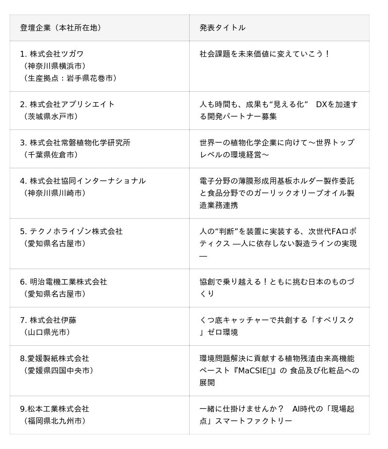 各社の共創ニーズは、ジェグテック上の「みらいPitch」特設ページにおいても併せて発信し、全国の中堅・中小企業・スタートアップ等との引き合わせを促します。