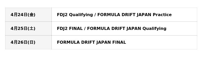 ■FORMULA DRIFT JAPAN開催日程(予定)