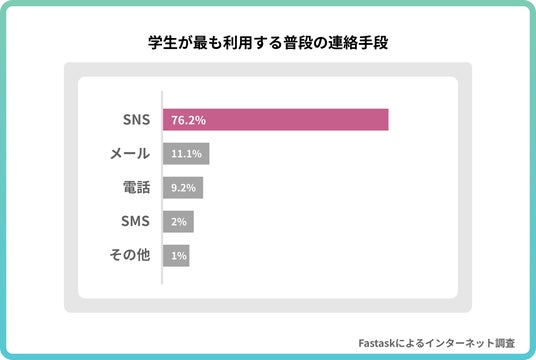 2.学生の約76%が「SNS」を日常の連絡手段として最も利用