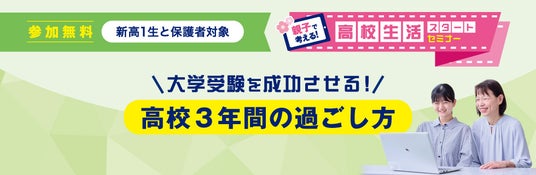 大学受験を成功させる高校3年間の過ごし方を実力派講師陣が伝授! 「親子で考える!高校生活スタートセミナー」開催~3月9日(日)・3月20日(木・祝)ライブ配信~