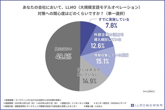 そこで今回の記事ではマーケティング業務を担当する担当者を対象にLLMO対策の導入状況や効果、課題について実施した調査結果をご紹介します。