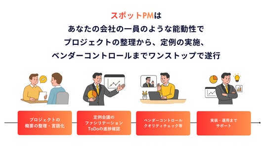 スポットPMは、こうした「組織の隙間」に落ちがちなタスクを拾い上げ、月額30万円からという低コストでプロジェクトを前進させます。コンサルティングを雇うほどの大事にはしたくないが、現場の負担を減らしつつスピード感も維持したい。そんな企業のわがままに応える外部の機動力として、多くの現場への需要に対応します。