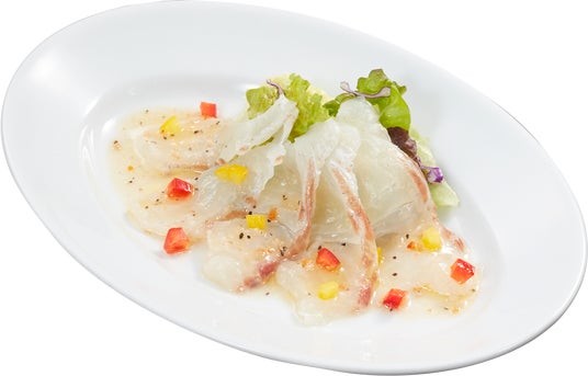 真鯛をイタリアンドレッシングで仕上げた一品です。真鯛の上品な甘みとドレッシングの爽やかな酸味が好相性。これからの季節にぴったりな前菜をお楽しみください。