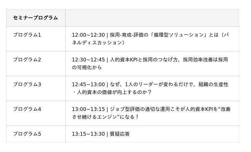 オンラインセミナー『情報開示KPIづくりに終始しない!採用・育成・評価で示す循環型HR施策“初”公開セミナー』開催