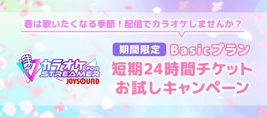 株式会社エクシング(本社:名古屋市瑞穂区、代表取締役社長:水谷 靖)は、ライブ配信・動画投稿者(STREAMER)をターゲットとした個人向け本格カラオケサービス「カラオケJOYSOUND for STREAMER」において、従来のBasicプラン30日 3,500円(税込)のチケットに加え、3月27日(木)から4月28日(月)までの期間限定で、1日のご利用から気軽にお試しいただける「Basicプラン短期24時間チケット」を1,500円(税込)で販売します。