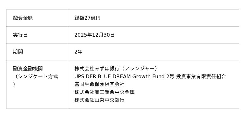 UPSIDER Capital、みずほ銀行組成の総額27億円シンジケートローンに対し、「AIキャッシュフローモニタリング機能」を提供
